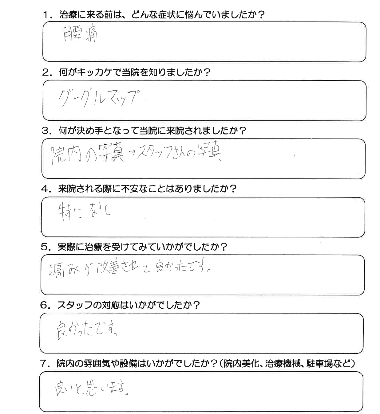 - 痛みが改善されて良かったです。
