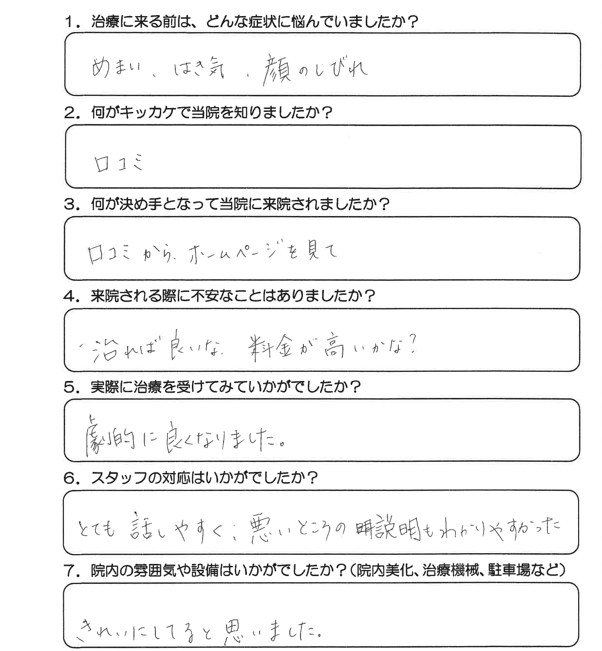 - 【お悩み】めまい、吐き気、顔のしびれ